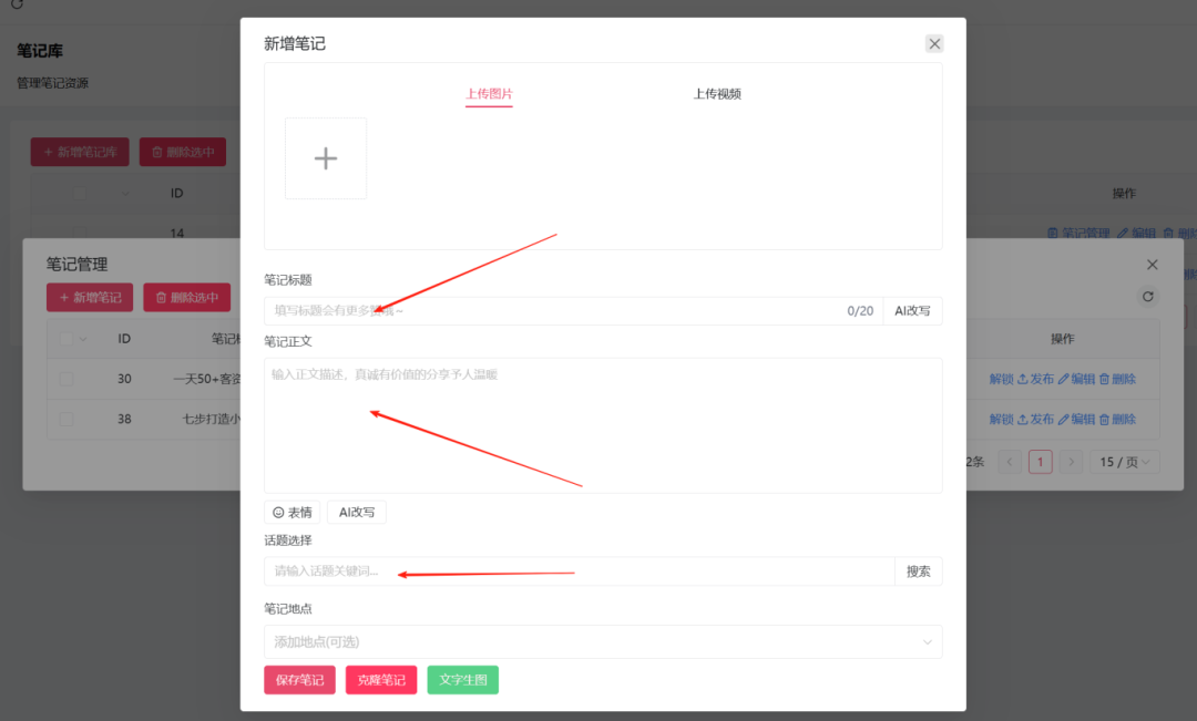 2-1.基本内容形式可以直接复制粘贴导入,原图直传,效果更佳。标题、内容、话题,可以自行编写。