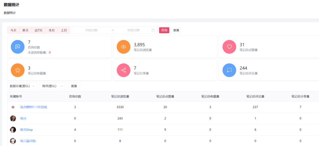 2-4.可对每一个账号、每一篇内容进行数据查看、数据汇总和分析,哪些内容有热度,一目了然。
