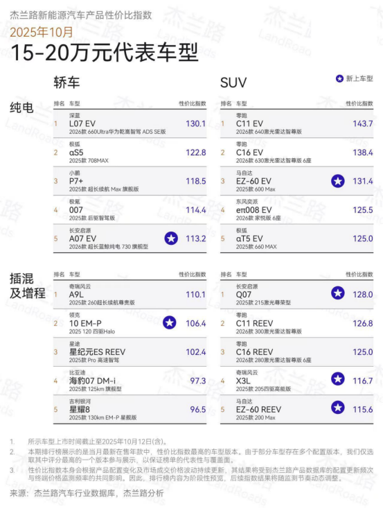杰兰路最新发布的《新能源汽车产品性价比指数(2025年10月)》显示,领克10 EM-P在15-20万元插电混动轿车中排名第二,在20-25万元区间也表现出色。上市首月,该车型就进入中大型插电混动轿车销量前三,并且成交均价在同级别车型中领先。