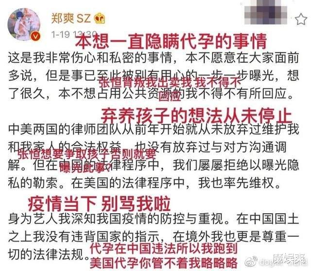 事情的起因是郑爽发现张恒出轨,两人感情破裂,张恒想要拿钱走人,但是郑爽却一毛不拔。为了报复郑爽,张恒便将郑爽后悔代孕,想打掉孩子的录音公布在了互联网上,引来全网炮轰郑爽。