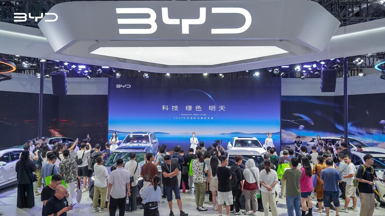 2025年10月01日,中秋国庆双节的杭州活力涌动,比亚迪海洋网在杭州国际博览中心-2025杭州湾大湾区车展迎来重磅时刻——2026款海豹 07DM-i 正式登陆杭州大地。这款集第五代DM 技术、高阶智能驾驶与越级舒适配置于一身的中大型插混轿车,以“移动的海上奢舱” 姿态完成杭城首秀,瞬间点燃车展现场嘉宾的热情。比亚迪海洋网浙北战区领导、杭州主流媒体、核心经销商及百余名消费者代表齐聚现场,共同见证这场定义轿车价值新基准的行业盛会。