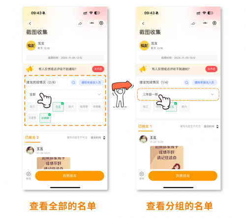 可在接龙中开启【按名单填写】功能!