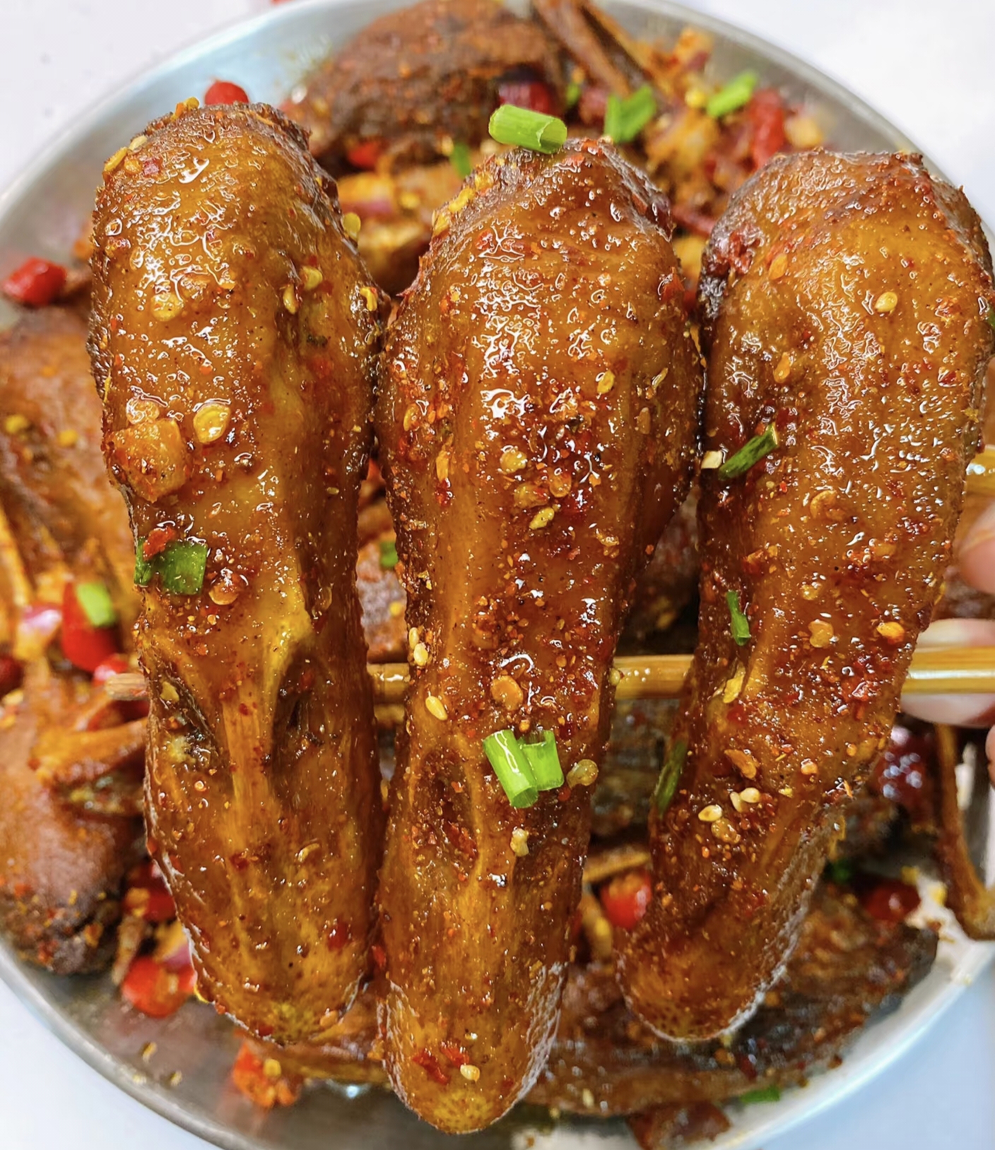 说干就干!我翻出压箱底的砂锅,结果第一次炸制时油花四溅,吓得我举着锅盖当盾牌;第二次调椒盐时手抖多放了半勺盐,咸得能齁死一头牛;第三次火候没掌握好,鸭头外皮焦黑,里面还带着血丝……经过七次"炸厨房"实验,终于摸索出让鸭头外酥里嫩的黄金法则!