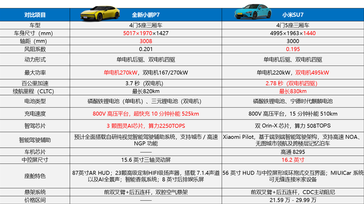 从参数对比看,其与小米SU7不相上下,未来或将成为直接竞争对手。