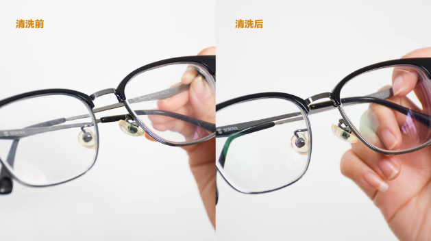 希亦CG超声波清洗机搭载了自主研发的UCT超能气泡清洗技术,并结合48kHz高频声波,能够生成密集且均匀的微小气泡,深入到边角和缝隙中,轻松瓦解附着的油脂、灰尘与皮脂。根据实际测试,其清洁效率高达96%,在同价位产品中表现优异。使用它清洗后,镜片焕然一新,清洁效果一目了然。