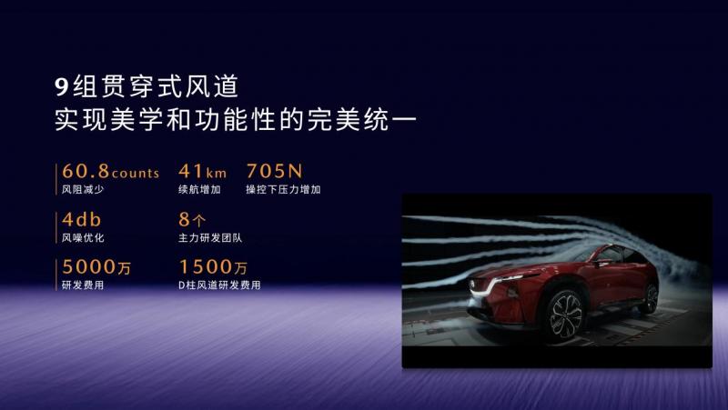值得一提的是其空气动力学表现。EZ-60创新性地采用了9组贯穿式风道与7组空气动力学组件,有效降低风阻60.8 counts,CLTC续航提升41km。多风道设计不仅优化了高速行驶时的车身下压力,更将风噪降低4dB(A),为车内静谧性打下基础。