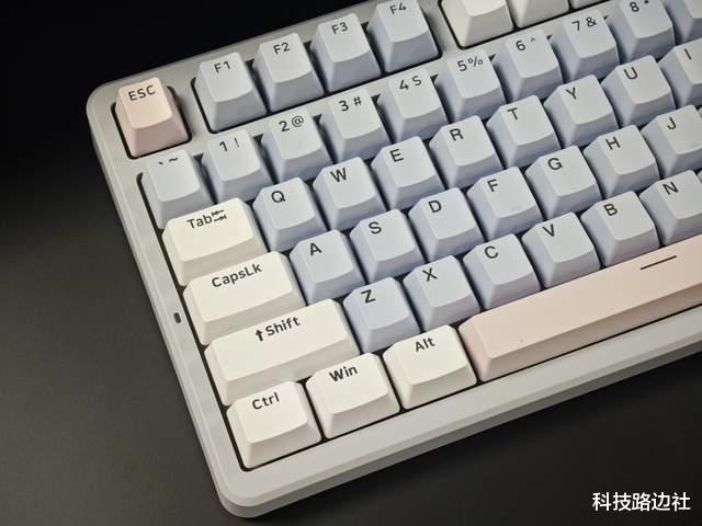 先看键帽:采用高含量PBT双色注塑工艺,略带磨砂质感,触感温润,OEM高度,舒适度升级,久用也不易磨损和打油。