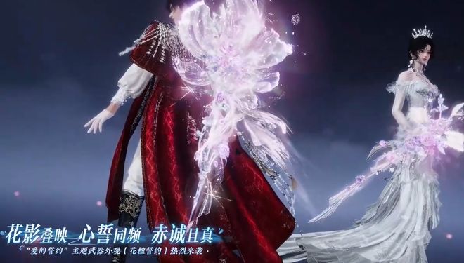从《逆水寒》曝光的国庆婚庆主题内容来看,确实极具吸引力。以花嫁款“爱的誓约”为例,婚纱上镶嵌着大量璀璨钻石,头纱飘动时还有无数花瓣随之飞舞;男装则采用王子系礼服设计,搭配醒目的红色披风,尽显贵气。