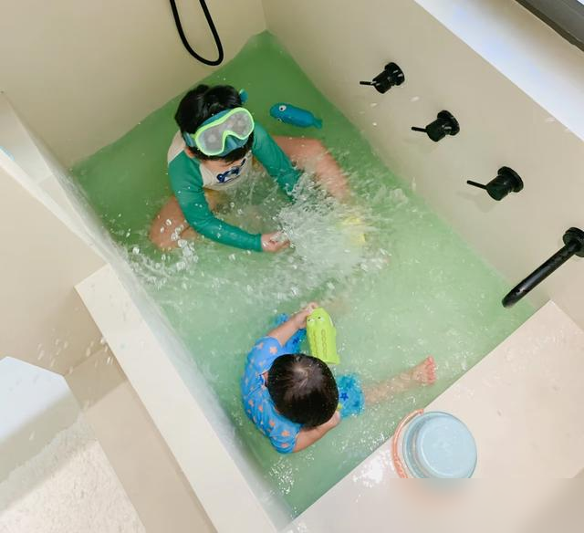 婴儿游泳课一次一两百,自砌浴池在家就能玩,孩子扑腾水的笑声能填满整个浴室;而且浴池边缘做30cm台阶,小朋友自己就能上下,安全又省心。