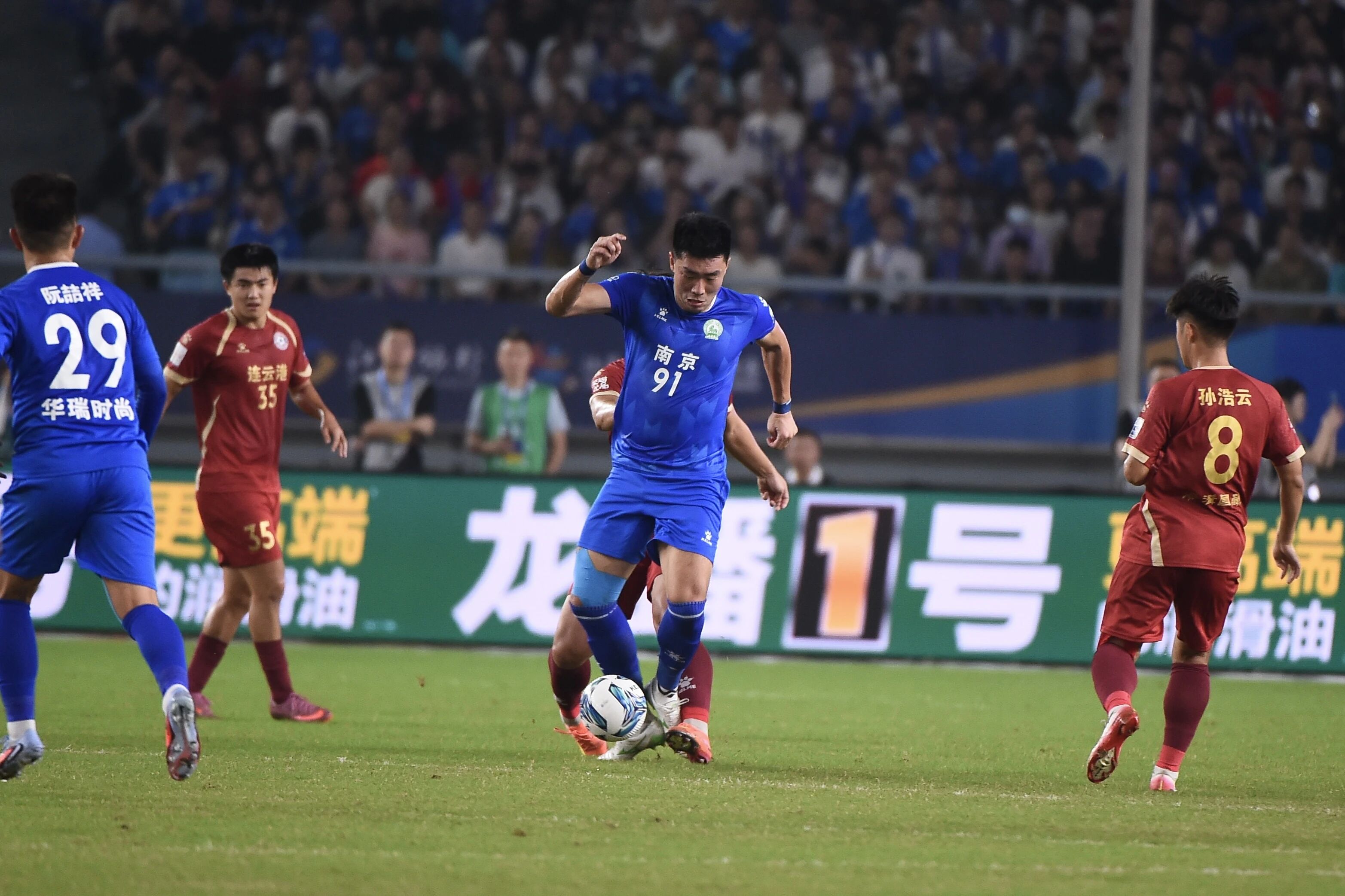 南京vs连云港,上半场,虽然南京机会较多,但连云港防守出色,守门员李海涛表现不错,上半场结束时双方0比0暂时打平。第62分钟,司俊琰禁区内抽射破门,南京队1比0领先。双方你来我往,互有机会,本以为比赛会以1比0结束。结果,常规时间补时最后时刻,场上风云突变。