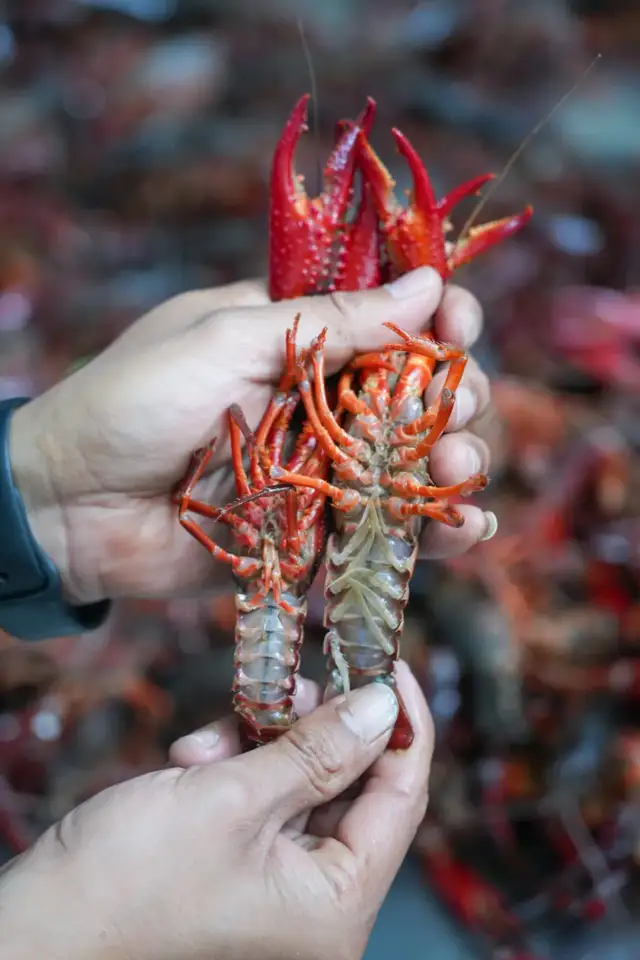 做虾多年,钳子大肉身小大概率是公虾,母虾肉身显然要大出一圈,这真的是做过很多年虾子生意的人才能具备的技能,所以我信他!