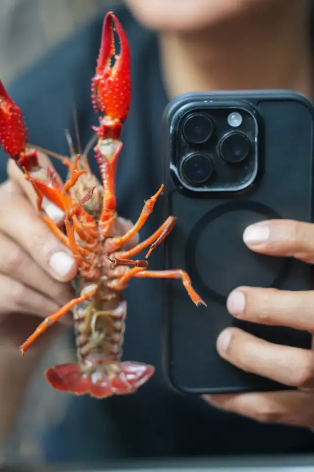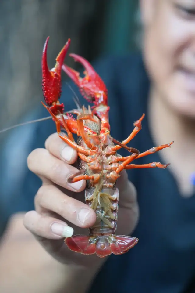 所以在这里,你甚至能看到一整个比手机还大的小龙虾。