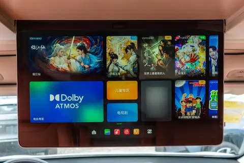 车内的屏幕配置也很到位,14.6 英寸的 2.5K 中控屏,显示效果很清晰,色彩也很鲜艳,不管是看导航还是看视频,体验都不错。我选的高配车型,还带 15.6 英寸的后排吸顶屏,平时孩子坐在后排,能看动画片、玩小游戏,长途出行的时候也不会觉得无聊。吸顶屏还支持连接蓝牙耳机,不会影响前排驾驶,这点考虑得很周到。