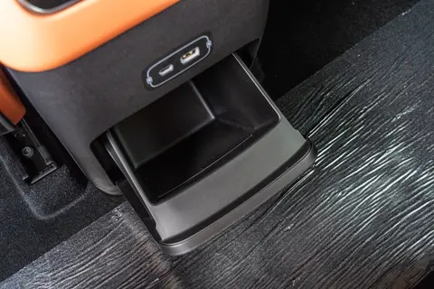 后来了解到,之所以能有这么高的空间利用率,主要是因为两个设计:一个是后翻式布置的电驱系统,把机械部件占的空间压缩到了很小,不会像有些车型那样因为电机位置影响后排腿部空间;另一个是 CTC2.0 电池底盘一体化技术,让车内地板实现了纯平,不管是中间过道过人,还是放些小物件,都方便不少。