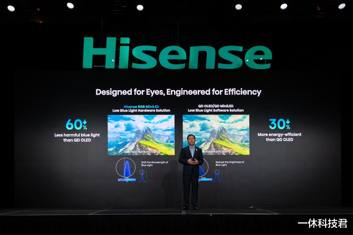 值得一提的是,光源和光色同控芯片的进化,让海信RGB-Mini LED实现了有害蓝光比QD-OLED降低60%,比传统QD-Mini LED降低75%,能耗降低30%,在拥有极致画质的同时,既是护眼先锋,也是节能标杆。