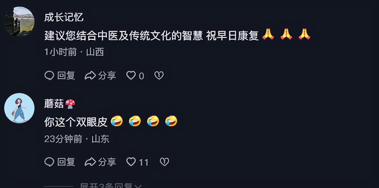 当时网友还不知道她是因何住院,都在评论区送上祝福,希望她早日康复。