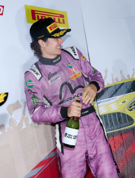 身旁的搭档方骏宇看得直乐,故意将自己的香槟瓶口转向别处,却忍不住调侃:“这次比珠海那次机灵多了,至少找对了安全区方向。” 这话勾起了大家的回忆 —— 去年珠海 GT3 赛事颁奖时,初次参赛的王一博因不懂开香槟技巧,不仅手忙脚乱拧了 12 圈瓶塞,还被突如其来的 “香槟雨” 浇了个透心凉,成了当时的名场面。