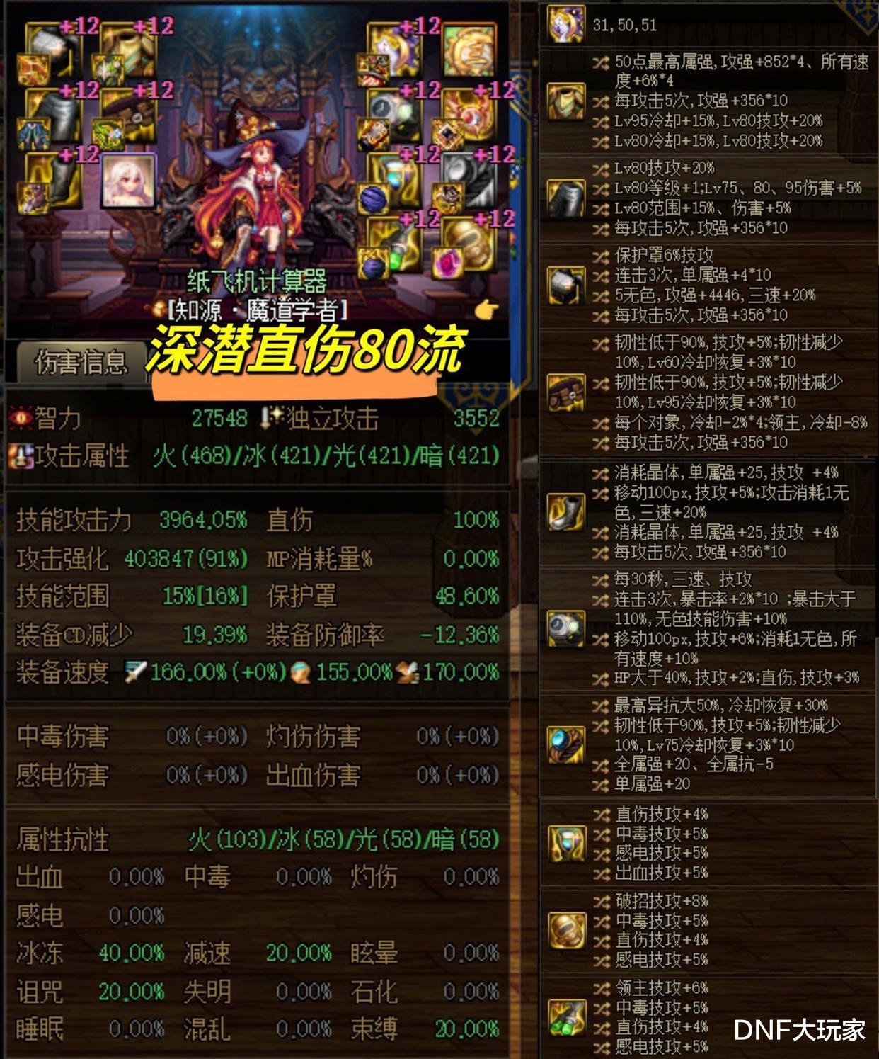 【2】深潜裤子:3个核心词条,“80级技能攻击力+20%;80级技能CD-20%;75、80、95技能攻击力+5%,80级主动技能+1”。