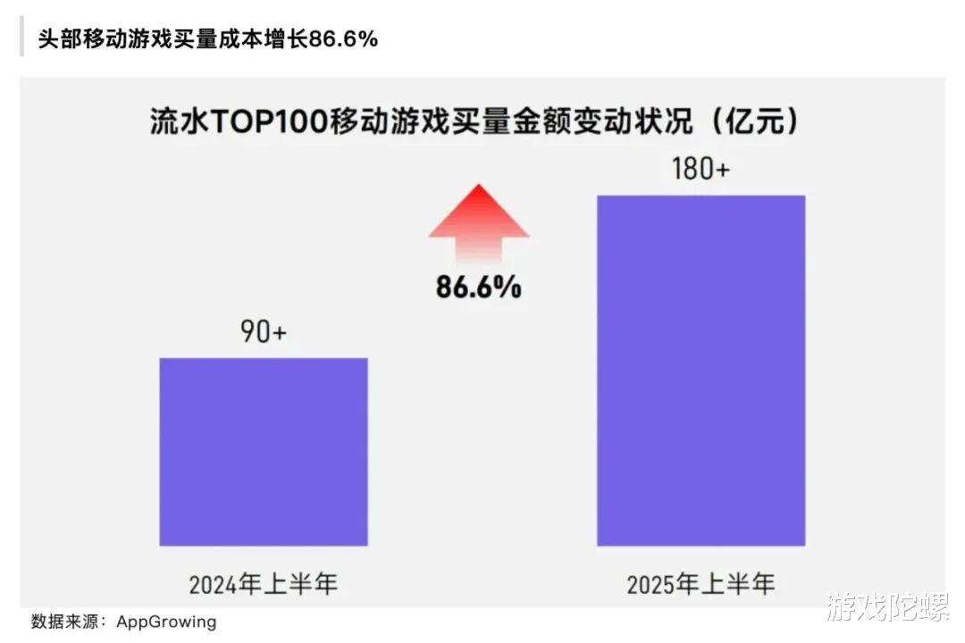 传统的发行思路在存量竞争下已难奏效。根据伽马数据发布《2025中国上市/非上市游戏企业竞争力报告》,2025年上半年流水TOP100移动游戏的买量成本增长86.6%,获客成本高企压缩了厂商利润空间,对中小游戏企业影响尤为明显。