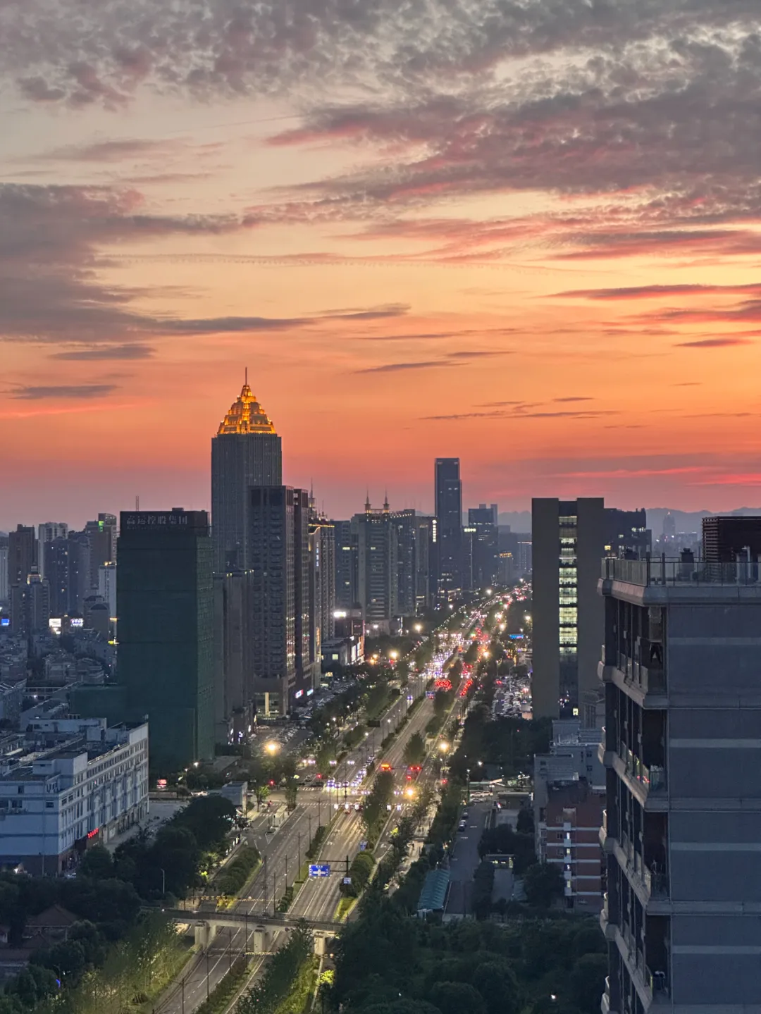 夕阳不错,但既然都已经爬楼了,为什么不找一个更好看的前景呢。然后,找到好的前景后,一定要聚焦前景,不要用二分之一构图。