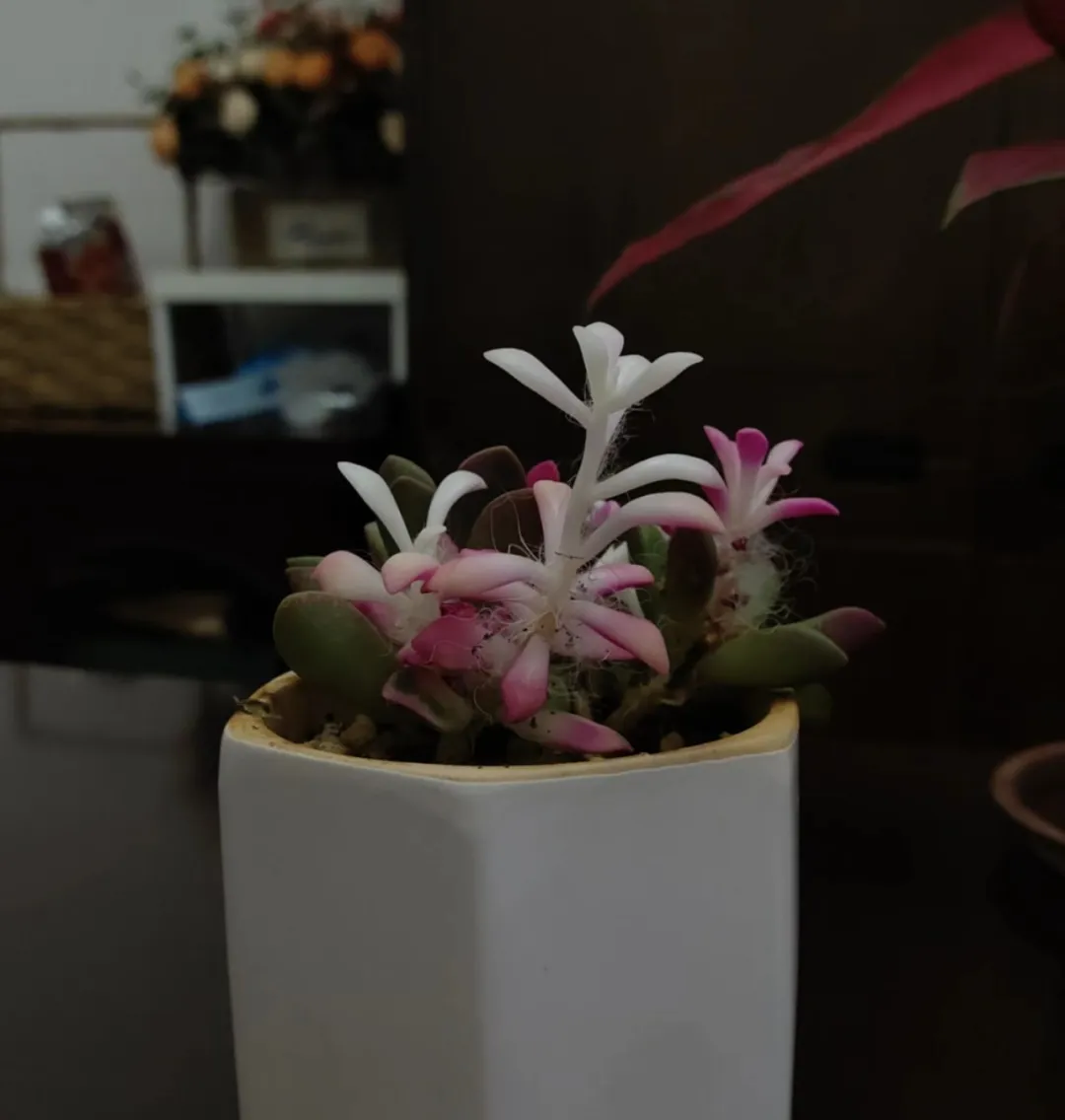 好漂亮的多肉,但两种改进方法,一是微距拍,聚焦多肉,二是要换一个干净段背景,简化一下背景。