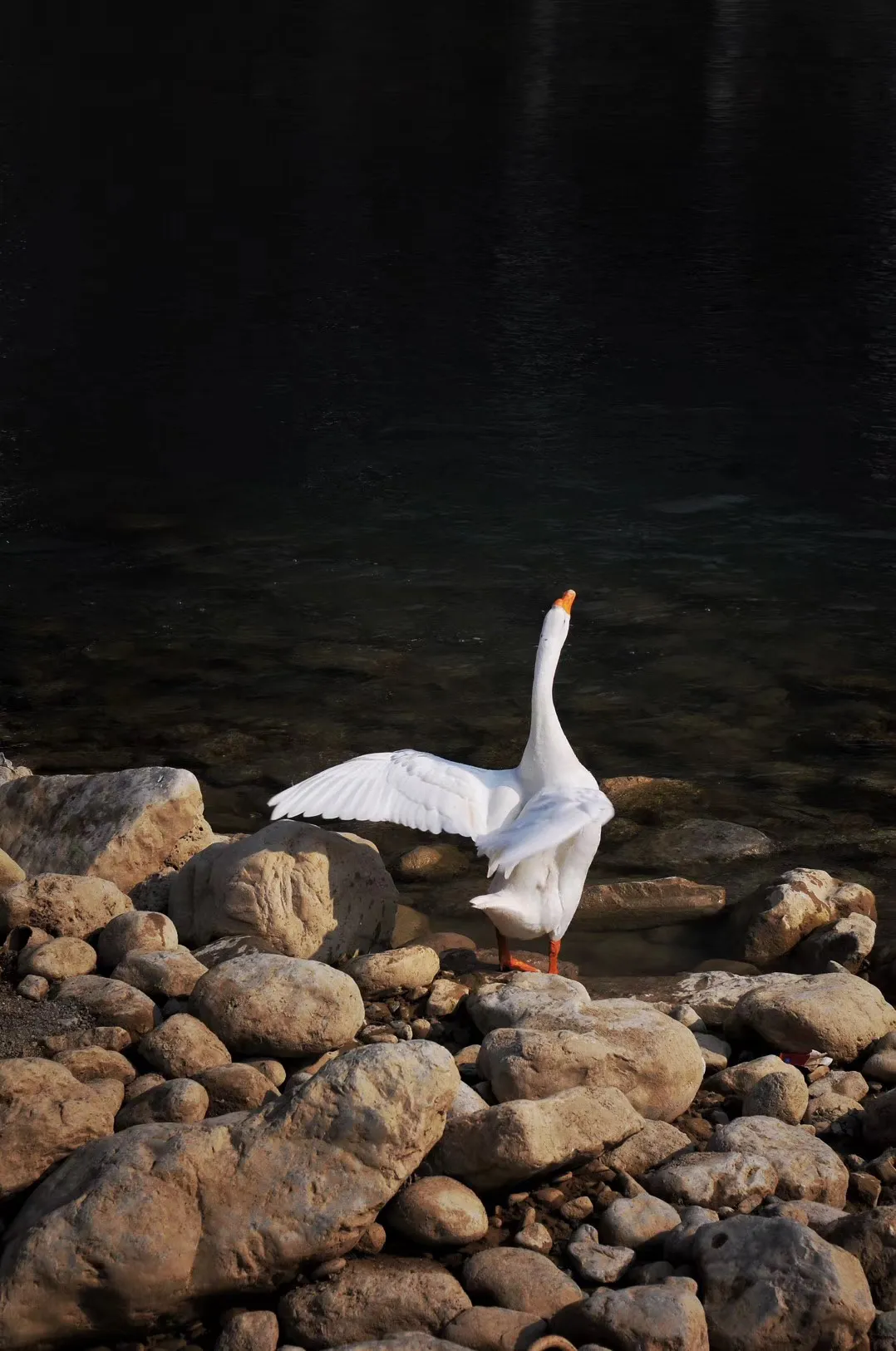 好棒。居然有种打工人终于下班的兴奋感,但水面调成了黑色,与明亮的地面比起来,感觉挺奇怪的。另外,构图的时候,建议将鹅放在画面左下方的三分之一点位附近,目前这张鹅稍微偏右了一点。