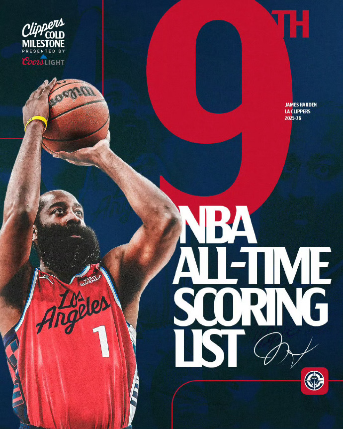 哈登和伦纳德今天同时大爆发,双双砍下30+。哈登手感一般,出场37分钟,28投11中,三分11中3,罚球8中7,贡献32分4篮板10助攻4抢断。在今天的比赛之后,哈登的生涯总得分来到28624分,超越奥尼尔(28596),升到历史得分榜第9位。接下来,哈登就要冲击30000分的里程碑了。