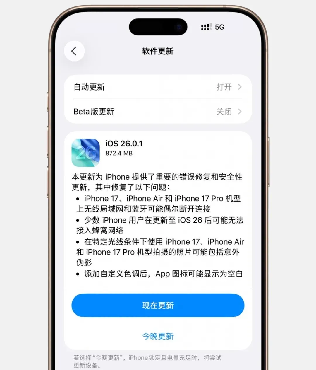 9月30日凌晨苹果悄咪咪更新了 iOS 26.0.1 正式版。没错,就在国庆节前一天! 这次更新真够突然的,版本号是 23A355,安装包大概 1 个 G, 没经过测试就直接来了,算是紧急更新吧。