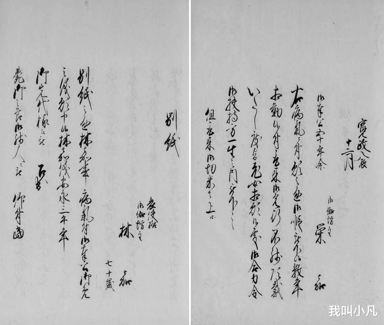1805-1810年(文化2-7年)的《女中帐》里,能看到御伽坊主的名字。左边是“林嘉”,年龄70岁。右为“荣嘉”,有关这位女中,文字记载是“御奉公五十年余”。两位都是老年妇女(图片:国立公文书馆藏)