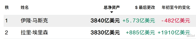 根据彭博亿万富豪指数最新数据,拉里·埃里森身家3830亿美元,与马斯克仅有10亿美元之差。