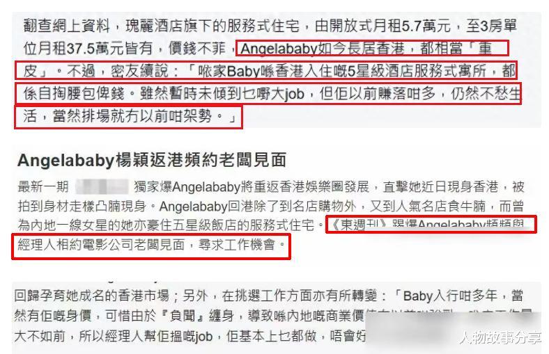 有港媒爆料,杨颖自掏腰包在香港租下了酒店式公寓,只为能够寻找更好的工作机会。在香港的这段时间,杨颖可谓是把自己的身段放的很低,一些廉价平面广告也会接下来认真对待,这是要从头开始的节奏。