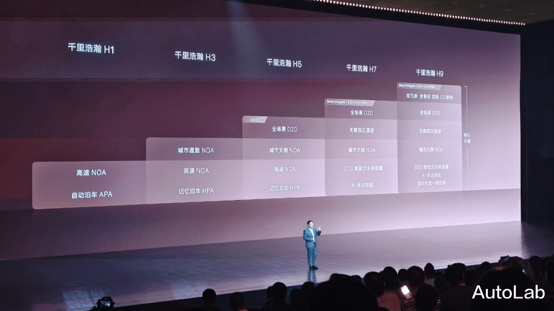 搭载的是一颗700TOPS算力的英伟达Thor-U芯片和一颗192线的激光雷达,支持全场景的NOA,也就是千里浩瀚H7。