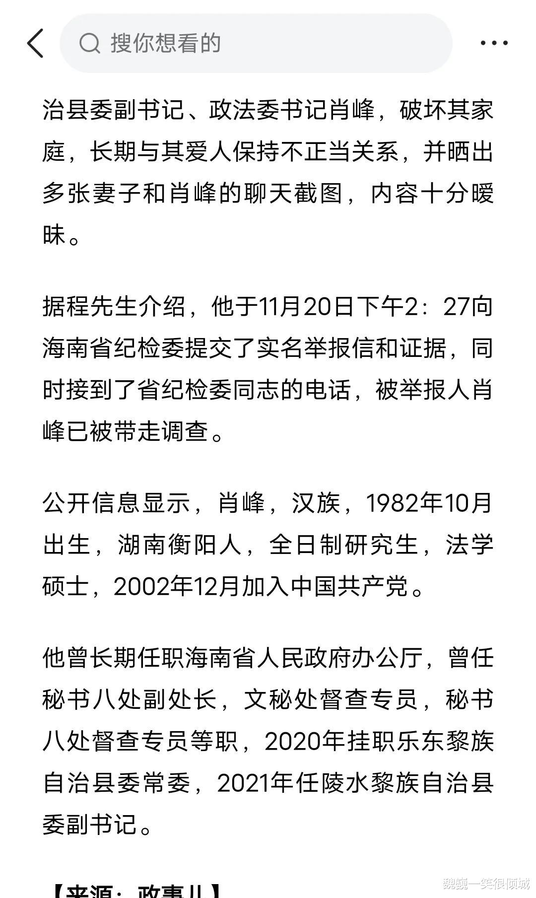 陵水县委副书记肖峰落马,出轨他人漂亮妻子,看起来长得老实憨厚