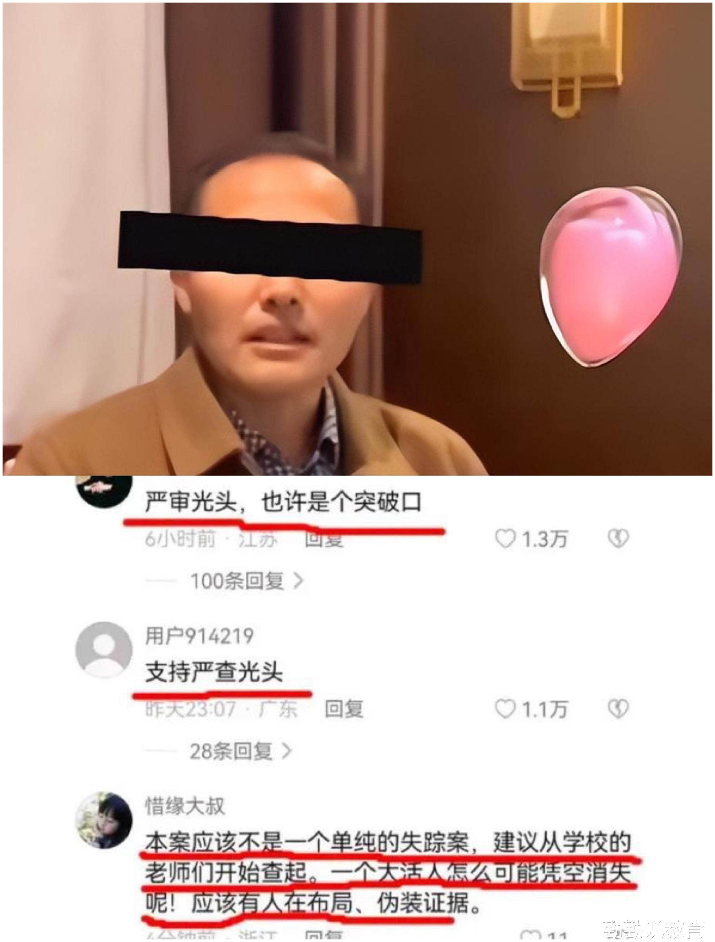 同时根据胡鑫宇的舅舅透漏,学校的部分录像存在丢失的现象,不过好在后续中,录像已经被高级工程师复原,通过复原的录像,能够看出监控中出现了两个人。其中一个就是光头的化学老师,另一个人就是学校的校长,曾有人爆料,这两个人之前不断地阻止家长调取监控录像,这一点值得大家深思,而且还有网友表示,这名光头的化学老师,看上去一点都没有老师的样子。