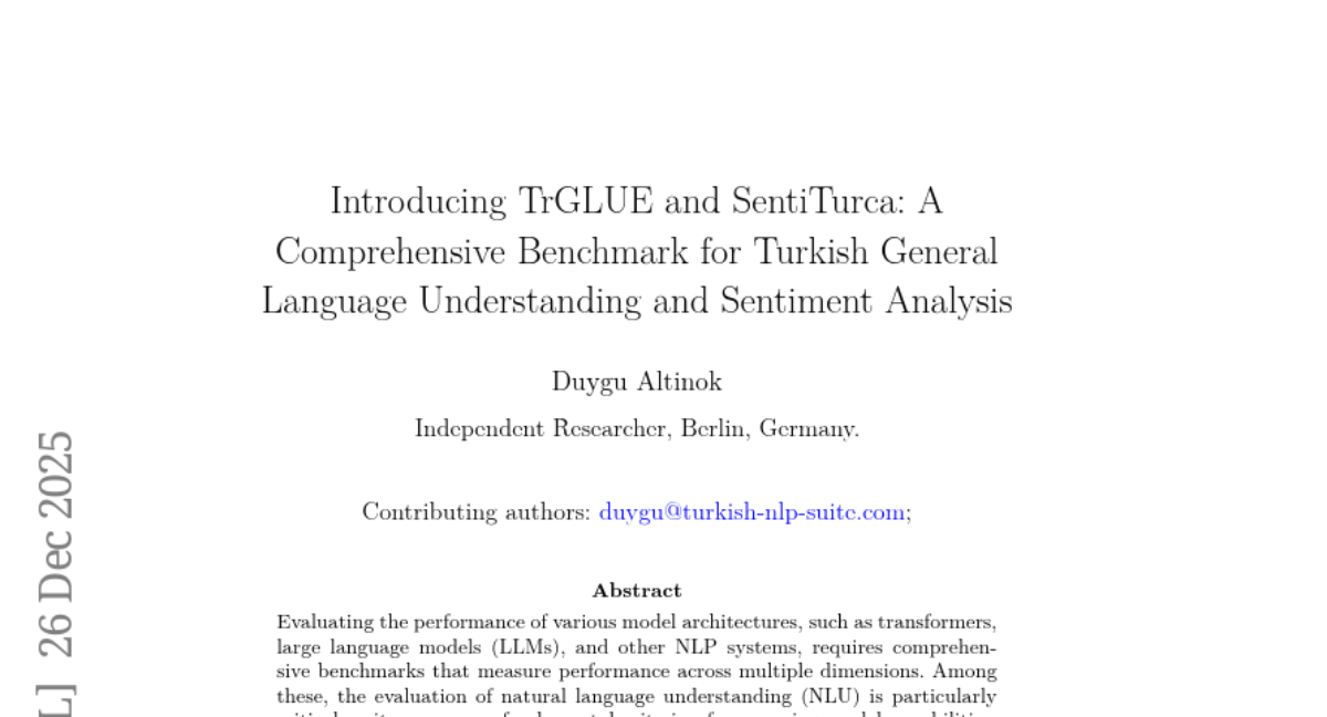 说到底,TrGLUE和SentiTurca的诞生不仅为土耳其语AI研究提供了标准化的评测工具,更为多语言AI的发展探索出了一条可行的道路。它告诉我们,真正的语言智能不是简单的翻译或模仿,而是对语言所承载的文化和思维方式的深度理解。随着越来越多语言拥有自己的评测体系,我们或许能看到一个更加多元化、更加公平的AI发展未来。对于那些希望了解这项研究更多技术细节的读者,可以通过论文编号arXiv:2512.22100v1查阅完整的研究报告。
