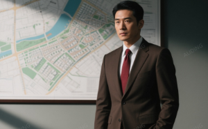 西装革履,头发梳得锃亮,站在桥头,对着镜头侃侃而谈。