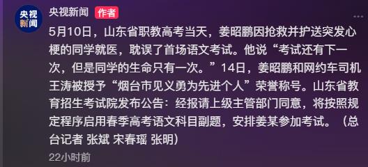 以正常情况来说,无论是高考还是春季高考都是不允许补考的,但这次的地区部门的做法则让我们看到了国家的温暖,同时姜昭鹏也获评见义勇为奖,央视新闻都有发布其后续,而面对“副题”一次,有些网友却又产生了别样的想法。