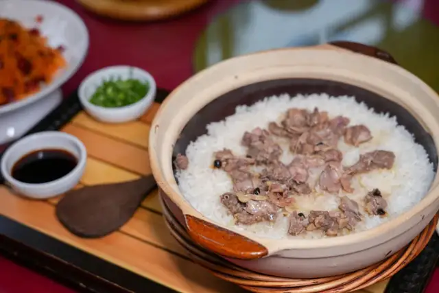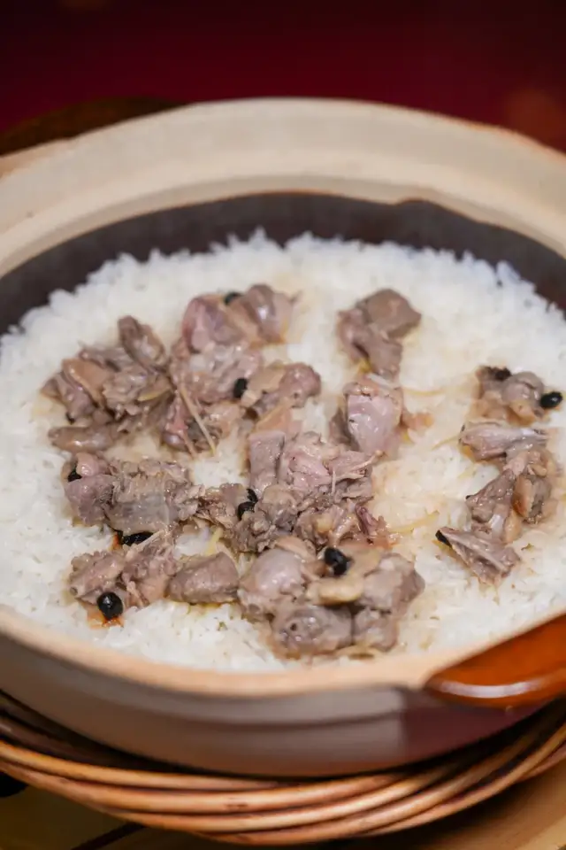 58元一煲现做的乳鸽饭,鲜鸽子剃骨,用砂锅现焗五常大米。