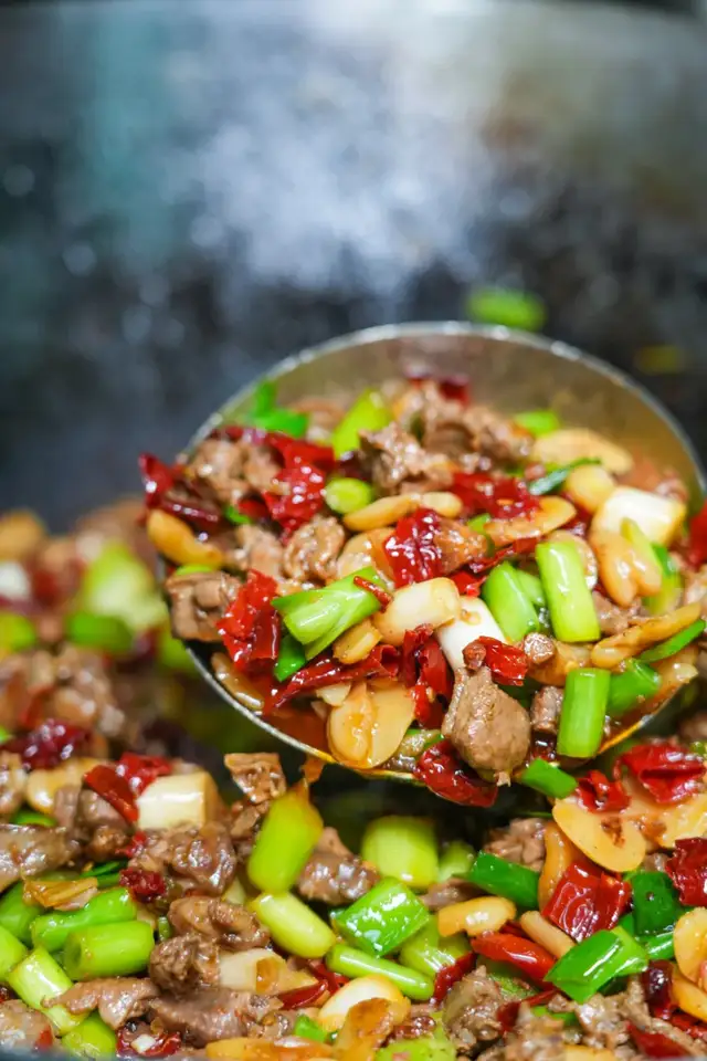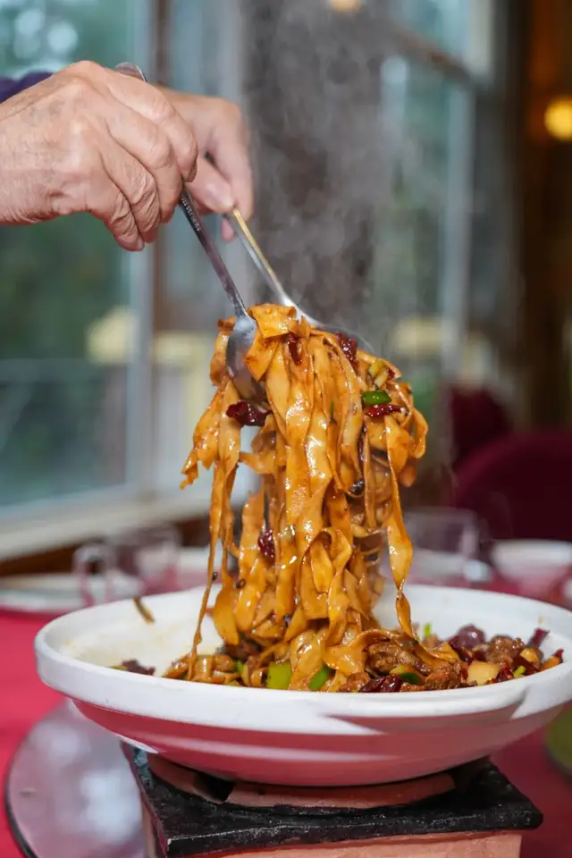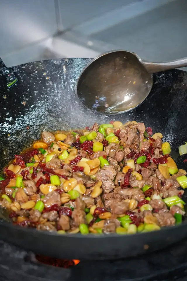 烈火烹油、鲜鸽子肉质粉嫩。鲜肉自带魅力,锅里走个几遭,加上一份面,翻炒,当下大家追求的烟火气、锅气唾手可得,一份香辣红子鸽拌面出锅。