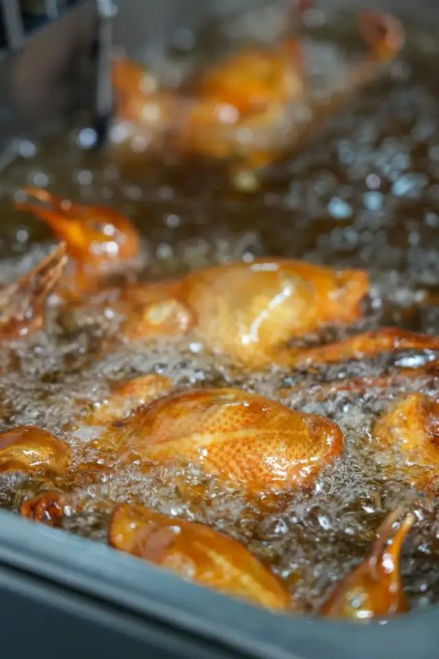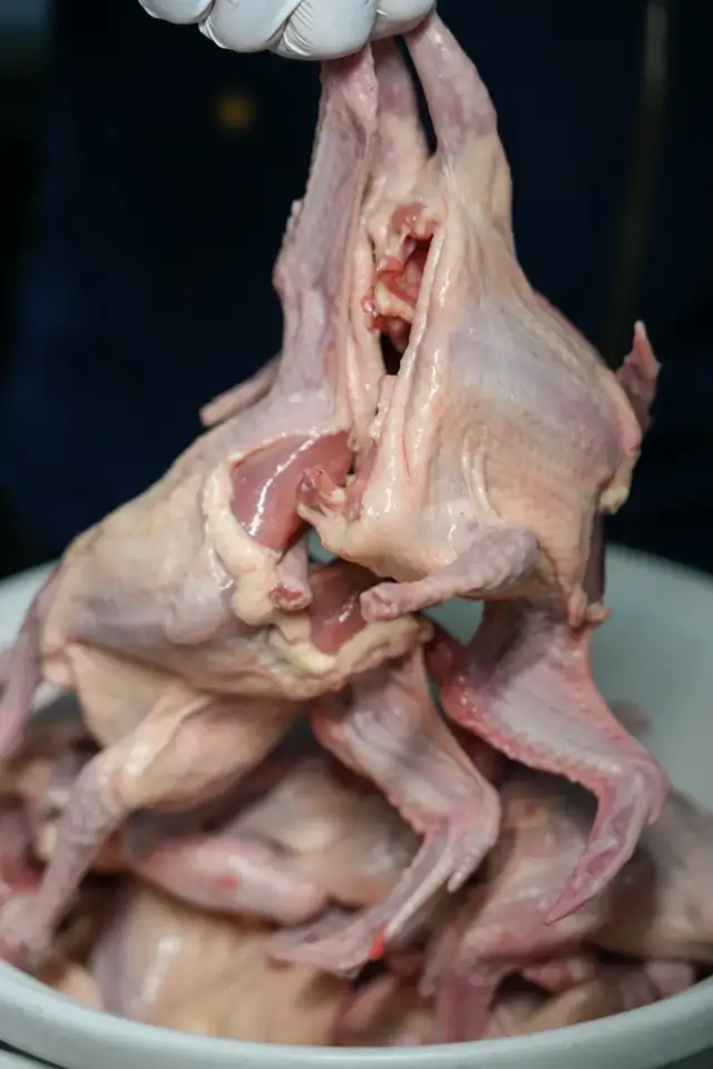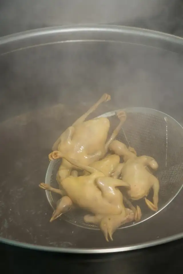 21天牙签毛黄金育龄乳鸽制作的智慧鸽,每日送来的鲜乳鸽,先卤再炸,有别于外地吃到的脆皮乳鸽。