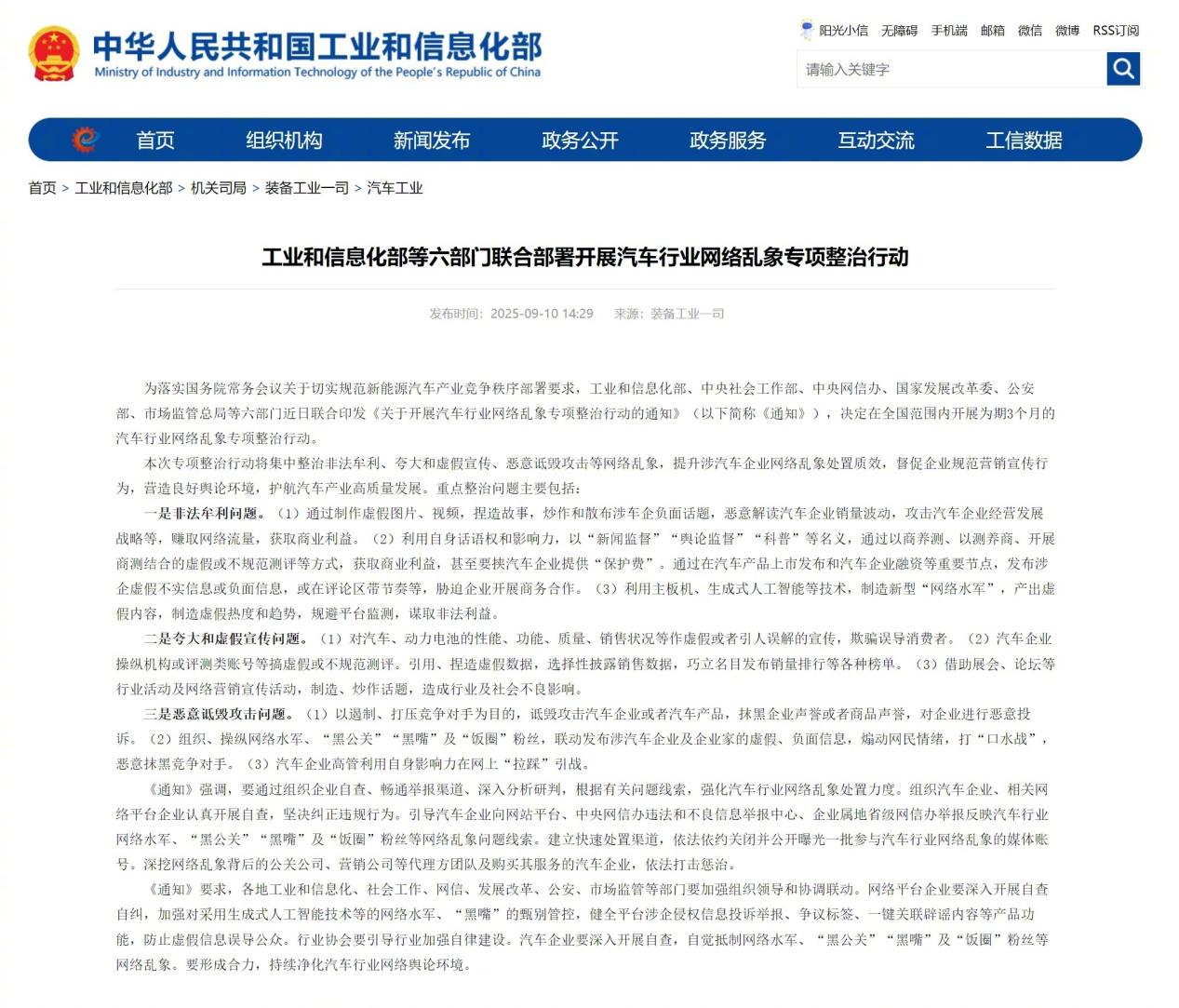 最近,工业和信息化部、公安部、市场监管总局等六部门联合“亮剑”,就发文表明要肃清汽车行业网络乱象。