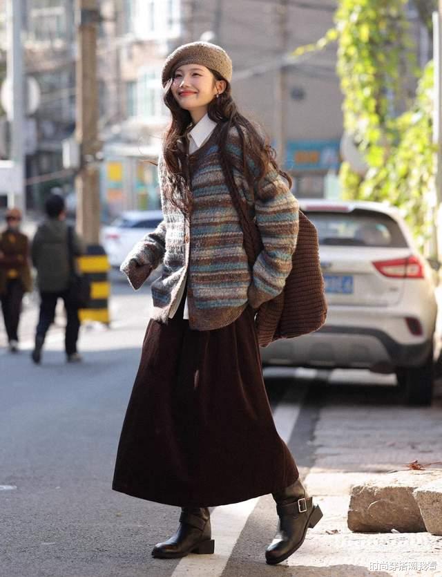 条纹毛衣+裙装,优雅藏肉两不误条纹毛衣搭配半身裙,既优雅又藏肉。宽松飘逸的长裙里面偷偷加上打底袜也不会显臃肿,完美隐藏秋冬悄悄长出的肉肉。