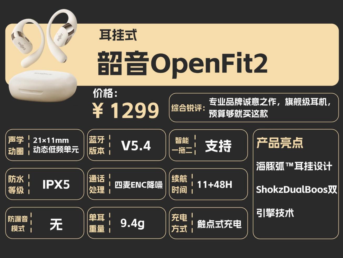 韶音OpenFit2售价:1298 元推荐程度:★★★★★