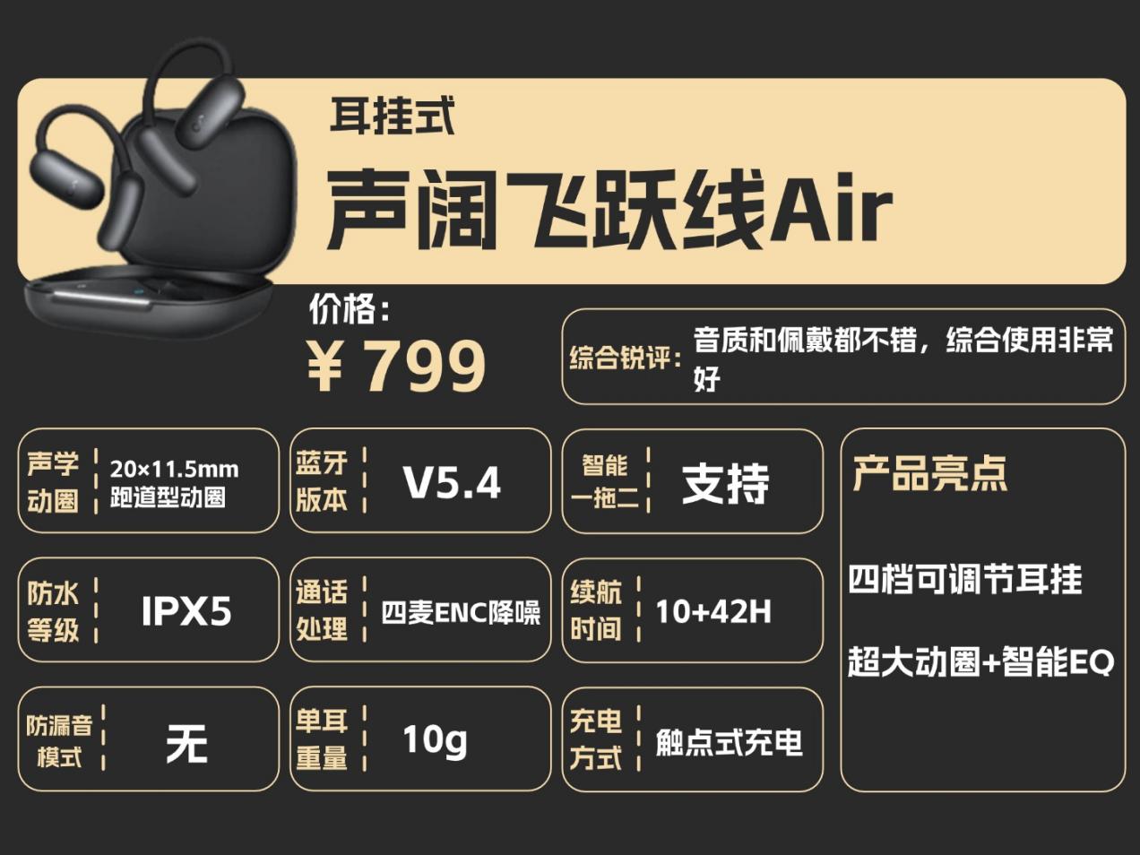 推荐理由:同价位综合实力突出,耳挂四档角度可调,双设备连接自动切换,办公娱乐兼顾。