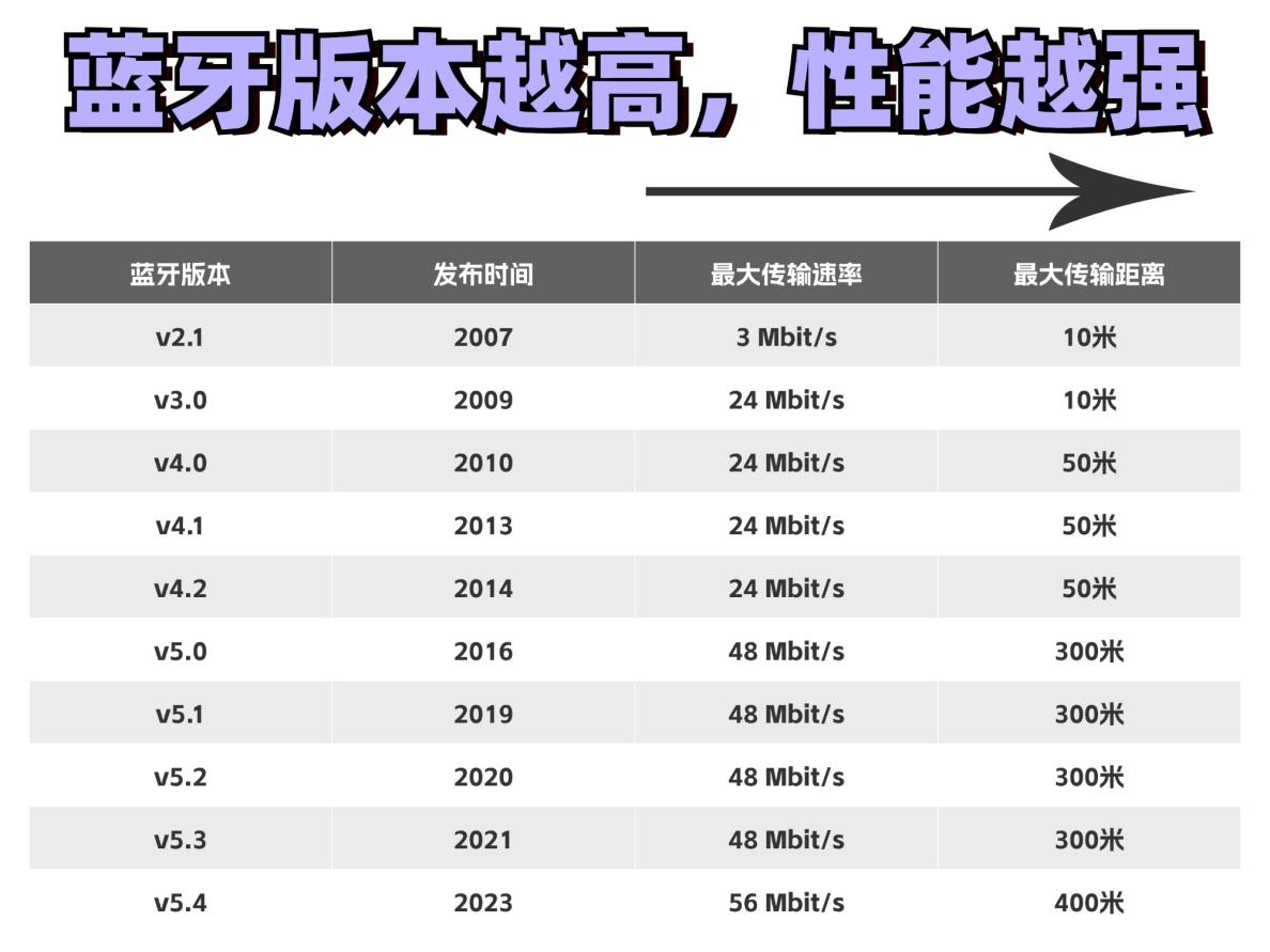 先说说蓝牙版本,它直接关系到连接稳不稳、用着顺不顺手,所以蓝牙芯片选高不选低。现在新出的机型不少都用 V5.4版本芯片,比老款的版本快多了,使用体验更好。