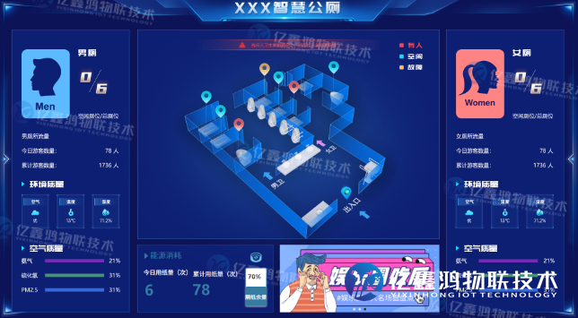 每个厕位的使用状态通过无线通信传输至管理终端。显示屏安装在公厕入口处,使用红绿指示灯或文字提示空闲厕位位置,引导人员快速找到可用厕位,减少通道拥堵。