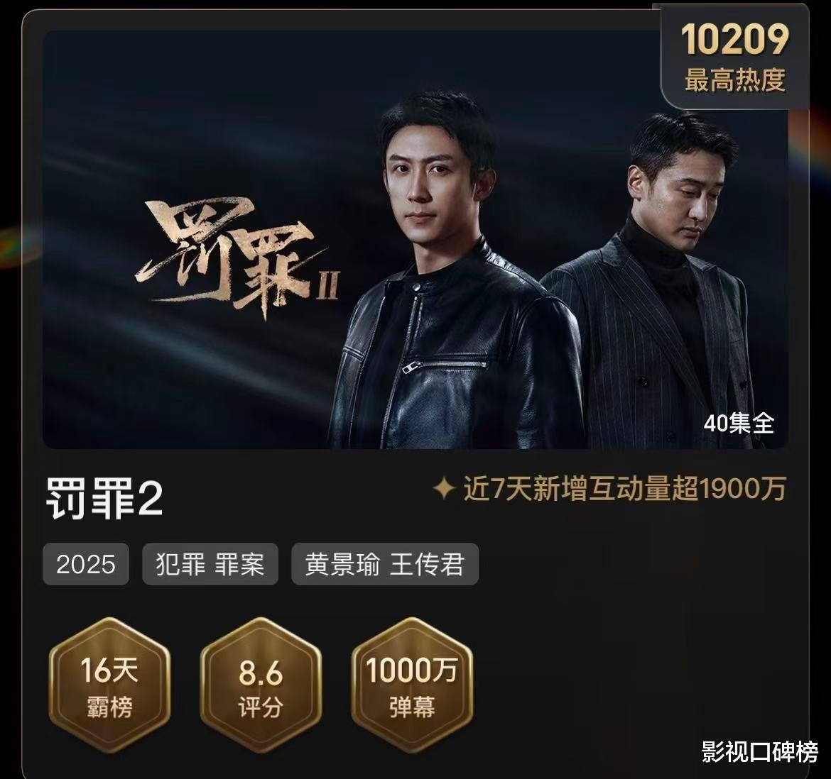 黄景瑜、王传君主演的《罚罪2》热度值破万,该剧也是爱奇艺2026年首部破万的作品,观众反响也不错,再加上新华社等主流媒体的深入报道,进一步引爆公众关注,热度与口碑的双线飙升,《罚罪2》也在全网范围内再度掀起了新一轮的追剧狂潮。