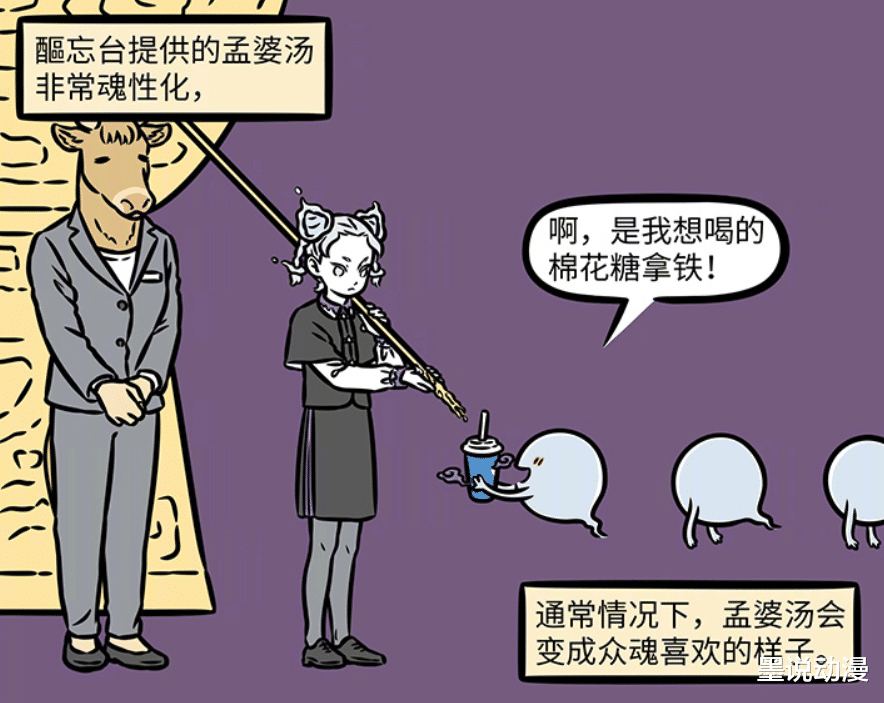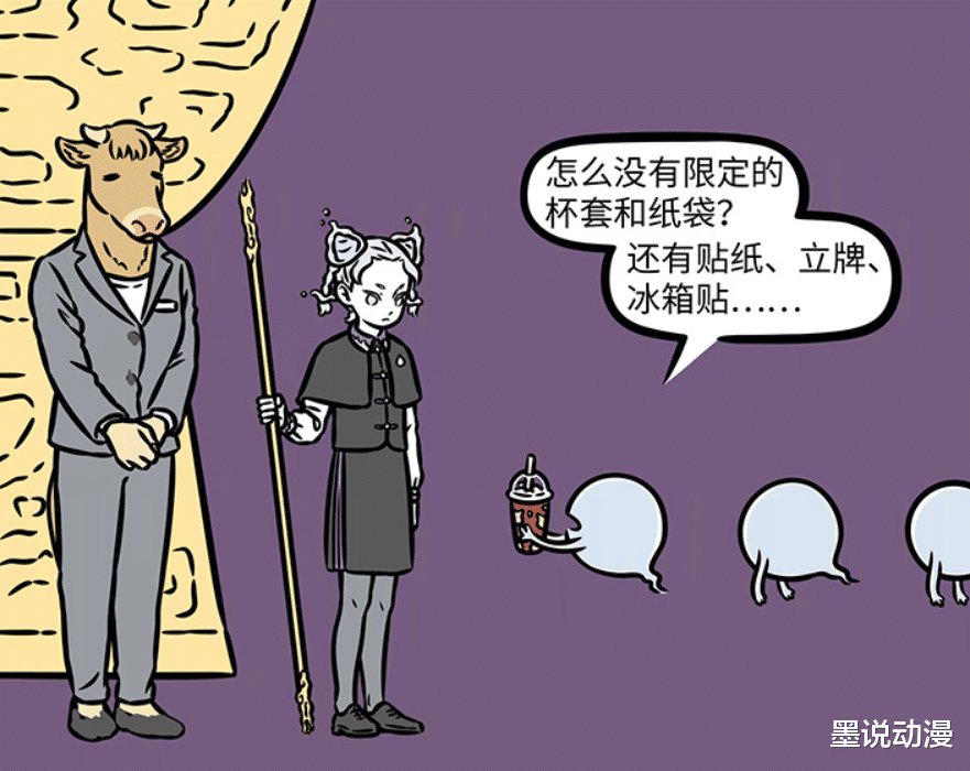 另一个魂魄想要限定的杯套和纸袋,这样看起来更有仪式感。还想要各种贴纸、立牌和冰箱贴。可是这些东西对于魂魄来说,其实没什么作用。喝下孟婆汤那一刻,他们连自己的喜好都会忘记。那么孟婆会答应这些魂魄们的请求吗?