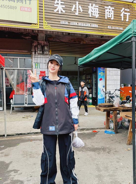▲柳岩在小商店门口摆拍,恰好当天是六一儿童节,穿着也像回到了学生时代。尽管在外打拼多年,回到家乡还是想做回父母怀中的孩子!