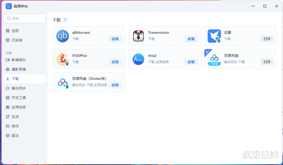 电影好看,也要好下载,为了方便用户获取资源,飞牛OS中也内置了多种下载软件和百度网盘(其他网盘Docker中可随时布置),只要稍微学习下,你想要的资源随便下。